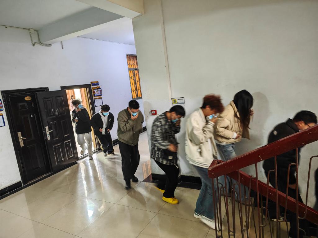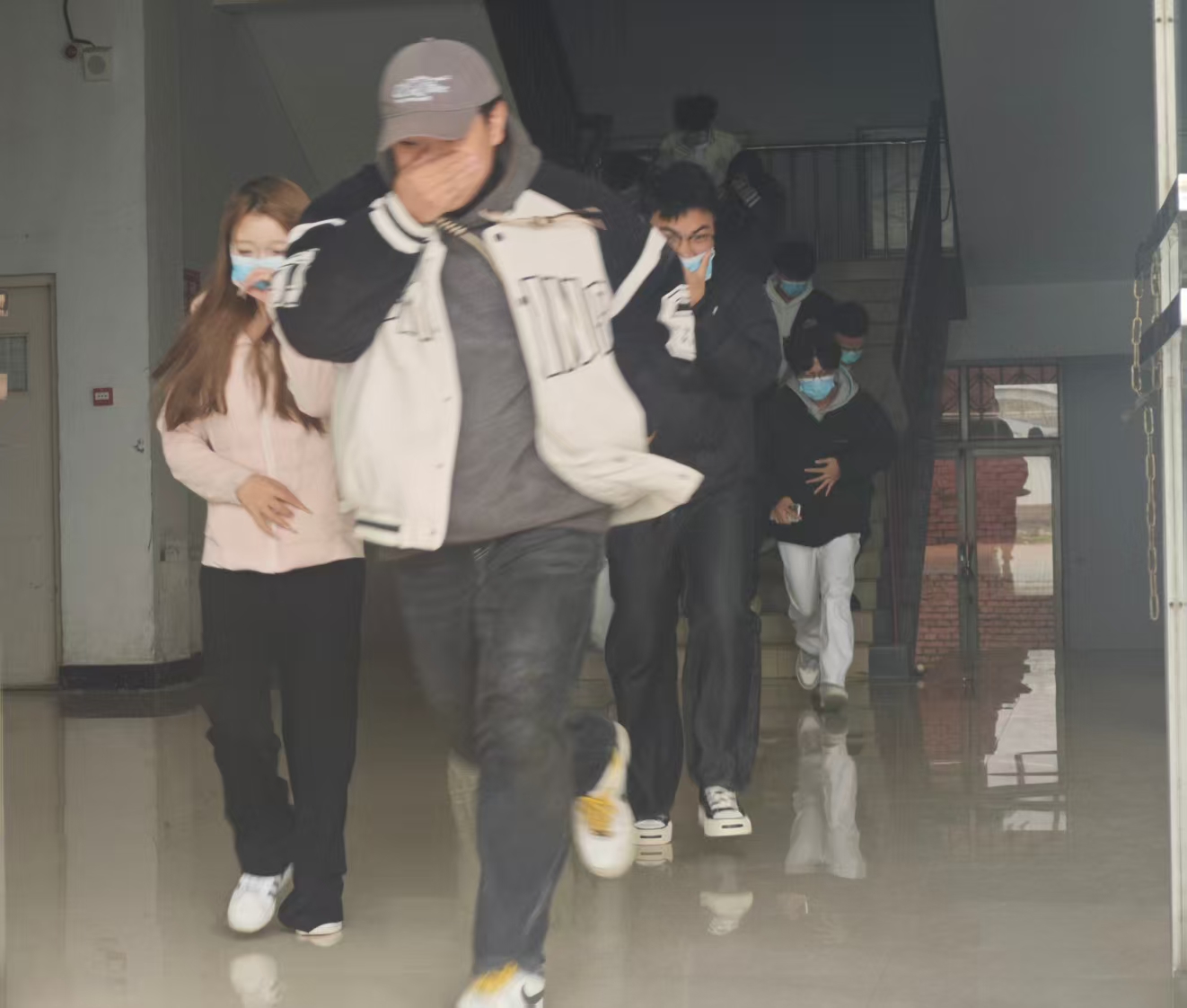 应急过程全方位模拟 本次演练覆盖学院各专业学生代表、辅导员及实训室管理人员,以“实战化、全流程”为原则,模拟真实火灾场景,全方位检验应急响应、疏散逃生等关键环节的实操效果。