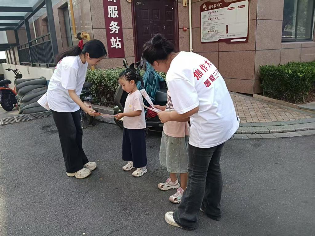 之后团队成员又化身“安全讲师”,为居民们科普急救知识。他们通过通俗易懂的语言和标准规范的动作演示,详细讲解了心肺复苏、海姆立克急救法等实用急救技能。在精彩的表演和知识讲解过程中,团队成员还穿梭在人群中,向居民们发放精心制作的防诈骗、防溺水宣传传单。