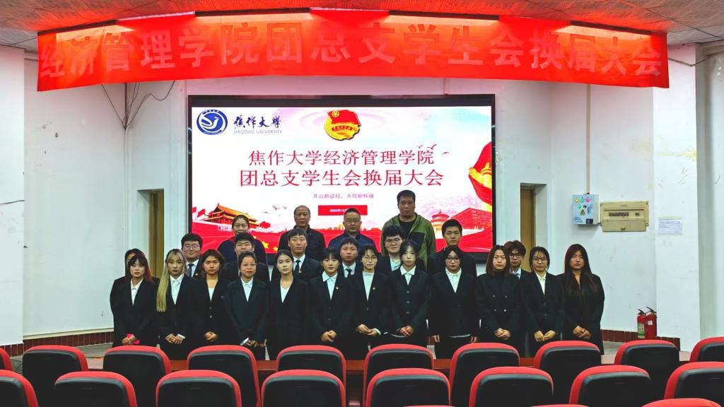 为进一步加强学生会组织建设,凝聚青春力量服务同学成长与学院发展。2025年10月23日晚,焦作大学经济管理学院学生会换届大会在报告厅举行。参加此次大会的有焦作大学团委书记乔磊、党总支书记孙占权、副院长李有良、学工办主任司文杰、团总支负责人彭彬,学生会全体成员及各兄弟院系嘉宾代表。